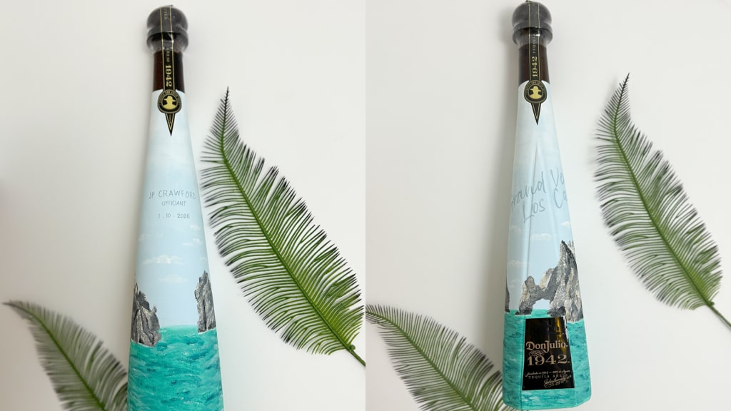 Over lunch in Arizona last spring, Ryan and Katelynn surprised Crawford and his wife, Kathy, with a customized bottle of Don Julio 1942, their favorite tequila, that included the request of a lifetime. At first, they pretended like they forgot something in the car.