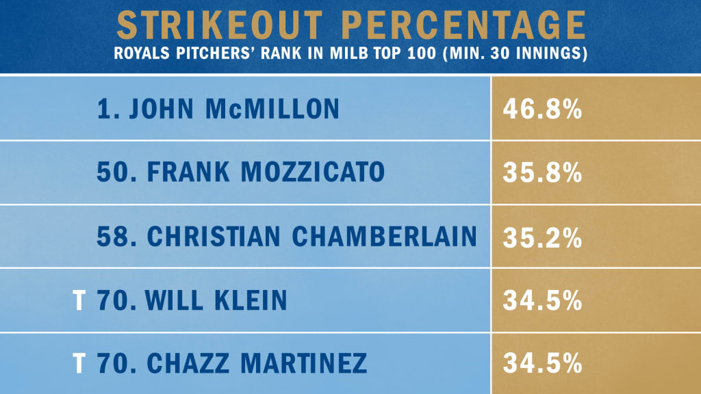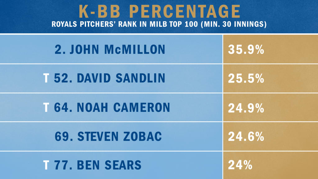 At the All-Star break, five Royals pitchers ranked in the top 100 of all Minor League pitchers (minimum 30 innings) in strikeout percentage and strikeout-to-walk percentage; six rank in the top 100 in swinging-strike percentage. In 2022, Kansas City had just one pitcher -- Noah Cameron -- rank in the top 100 (minimum 60 innings) in strikeout percentage and strikeout-to-walk percentage. The Royals have seen improvements across the board in what they call key performance indicators -- ERA, WHIP, hard-hit percentage, first-pitch strike percentage and more.