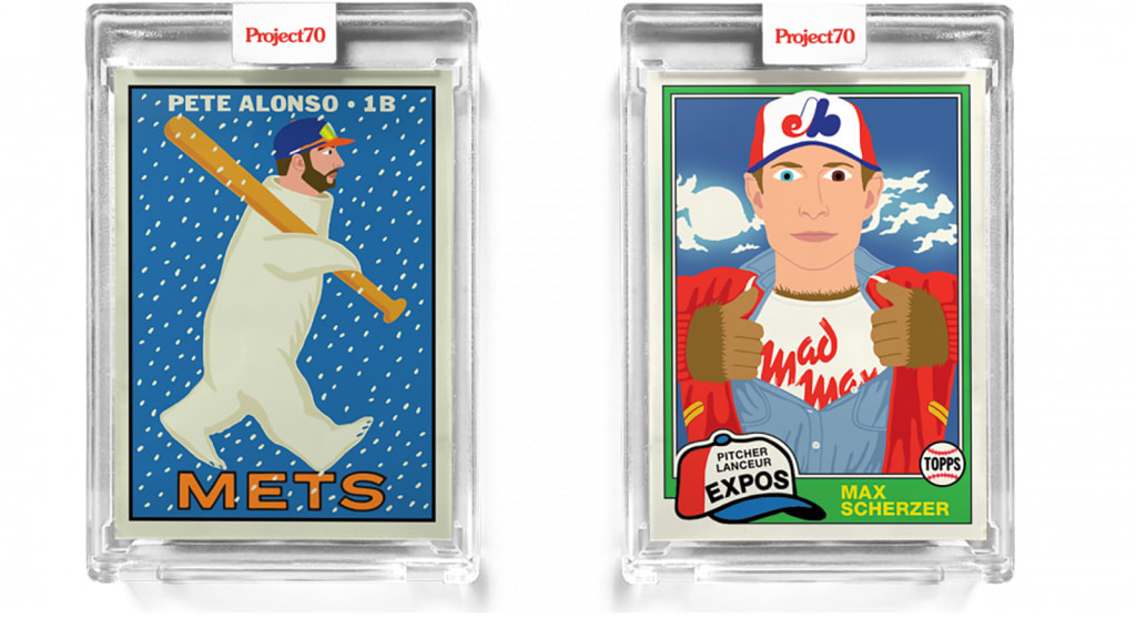 You may have first seen Shore's designs on Mikkeller beer cans and bottles, where his colorfully simple-yet-detailed designs easily stand out amidst crowded coolers. That approach has helped make him a star on the baseball card circuit, as his whimsical creations have inspired childlike joy from collectors who have ordered Pete Alonso polar bear cards or Max Scherzer "Teen Wolf" ones.