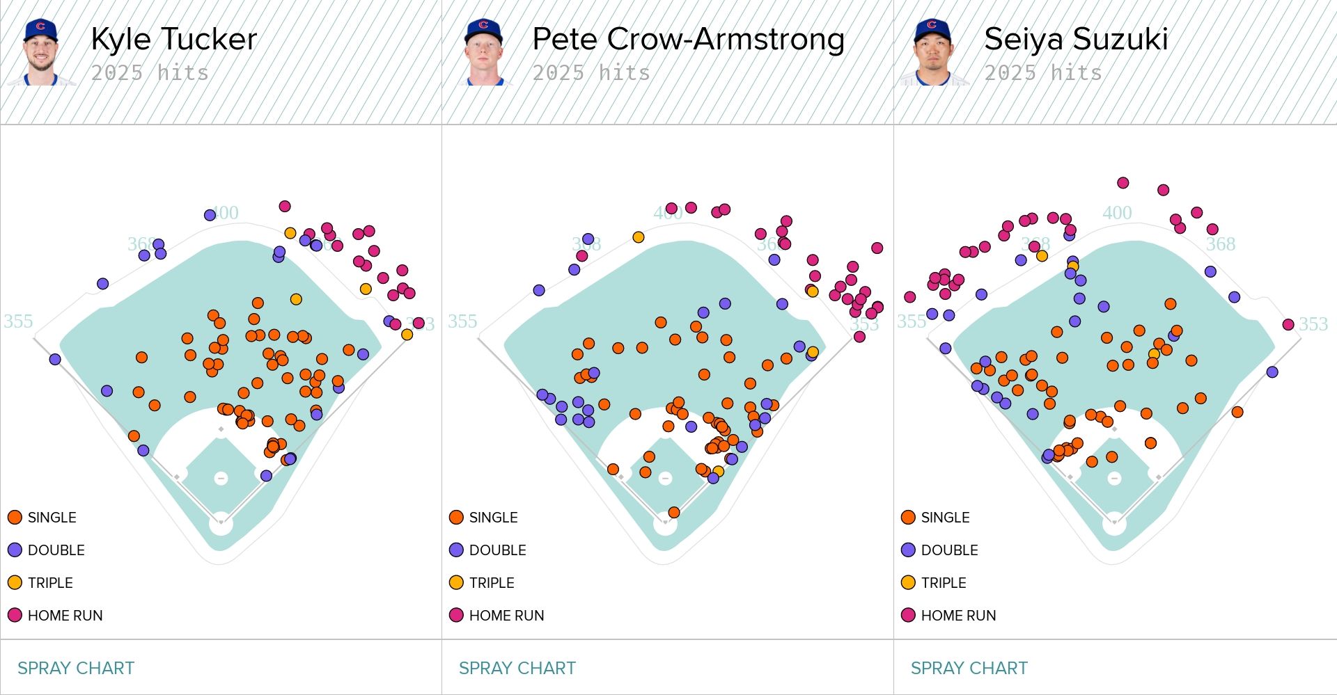 The Cubs' three star sluggers are leading the way: Kyle Tucker, Pete Crow-Armstrong and Seiya Suzuki. Tucker has been pulling balls in the air his whole life. But PCA and Suzuki have made adjustments to tap into their pull power this season.