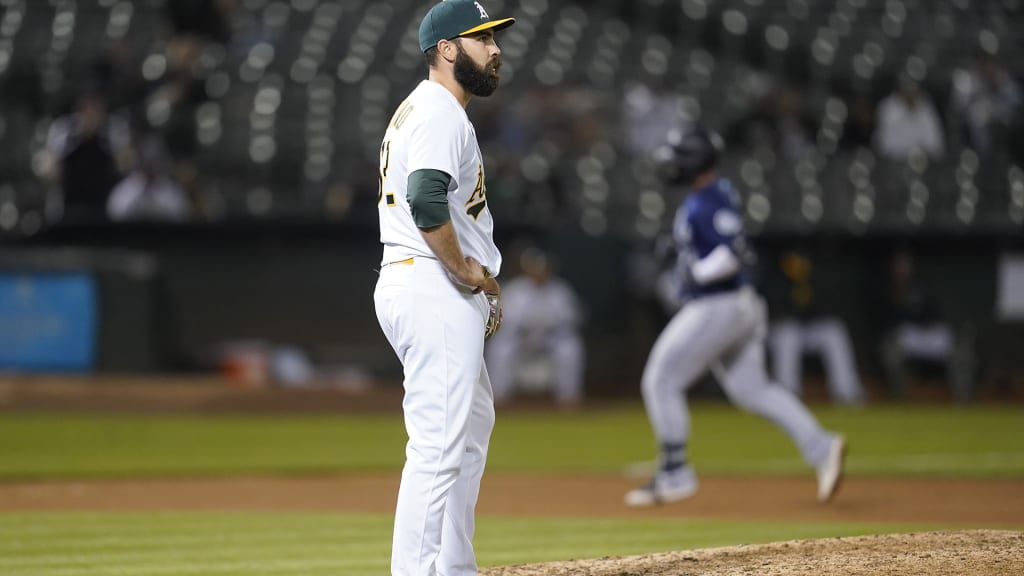 The A’s had a one-run lead entering the ninth after Matt Olson’s 32nd homer of the year -- a tie-breaking solo shot in the sixth. Trivino was in search of a bounce-back after his blown save on Saturday afternoon. But just three pitches into his outing, he issued a game-tying solo blast to Ty France.