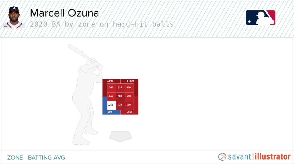Putting together both elements of quality contact for Ozuna, 24.9% of his batted balls in 2020 were both hard-hit and with a sweet-spot launch angle. That ranked 12th of 194 batters with at least 100 batted balls, a list led by none other than Ozuna's '20 teammate and NL MVP, Freddie Freeman. It was also the highest such rate Ozuna has had since '15, furthering the point that he made more quality contact in 2020, to go along with having better results on that contact, by rate.