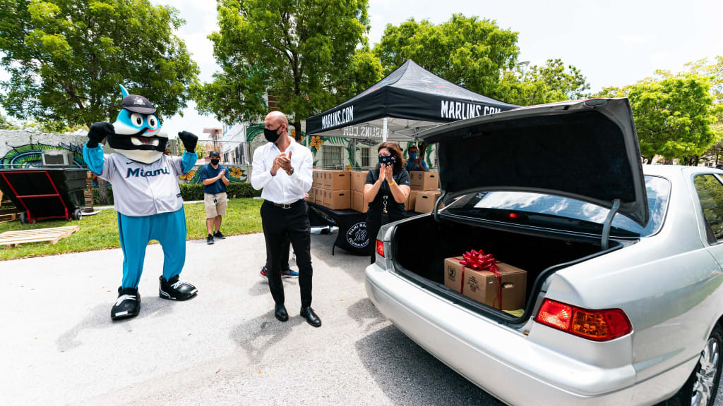 Raquel "Rocky" Egusquiza, the Foundation's executive director, other members of the front-office staff and Billy The Marlin also were on hand to provide 500 households with food boxes in partnership with Feeding South Florida. Items included proteins, starch and fruit.
