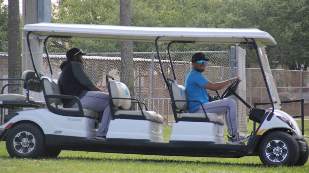 So were Miguel Rojas and Jesús Aguilar, who drove by on a golf cart to watch for a few minutes.