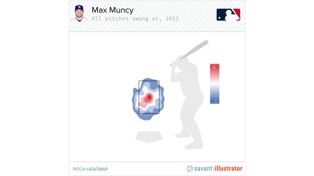 Muncy remains one of the most patient hitters in the game, ranking in the 97th percentile in chase rate, his fifth straight season in the 94th percentile or higher. And he’s especially stingy in terms of going after offerings in what Statcast considers the “chase” and “waste” areas -- further than one baseball’s width outside the edge of the zone. Of more than 230 batters who have seen at least 100 such pitches, only teammate Will Smith has swung at a lower rate than Muncy (6.2%).