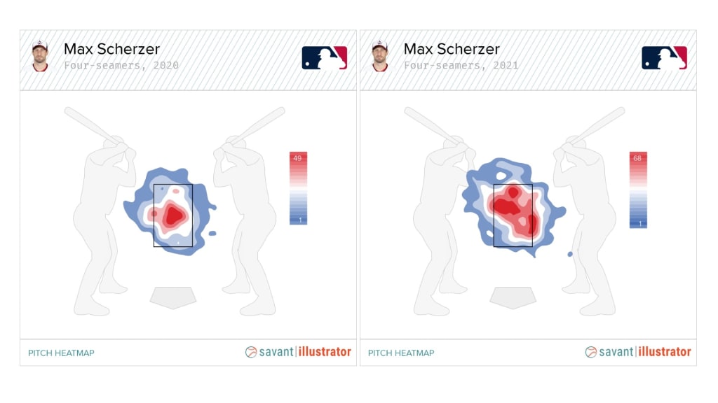 Here’s a closer look at how Scherzer, who is scheduled to start Wednesday against the Cubs at Wrigley Field, has managed to turn back the clock in 2021. (All stats are through Monday.)