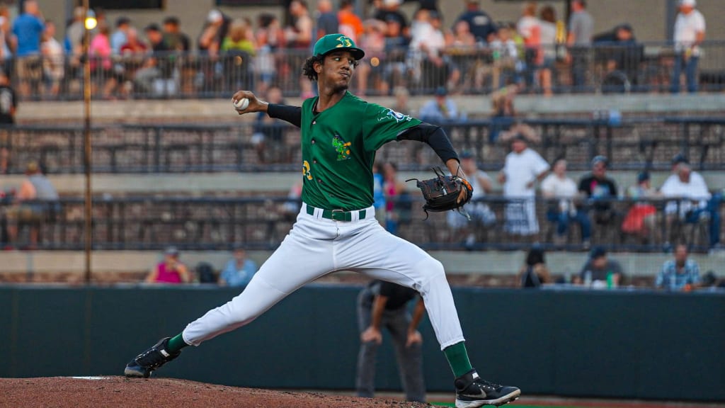 Perez has grown four inches and added 45 pounds to his 6-foot-8, 200-pound frame since signing. His velocity reached 97 mph this season, and he shows feel for spinning a curveball and some aptitude for using a changeup, according to MLB Pipeline. Perez projects to reach the Majors in 2024.