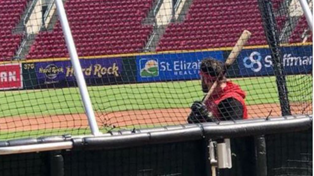 CINCINNATI -- Wearing a hooded sweatshirt with cutoff sleeves that made enough room for a long-sleeved compression shirt underneath, injured Reds infielder Mike Moustakas worked out on the field under a blazing sun on Saturday afternoon.