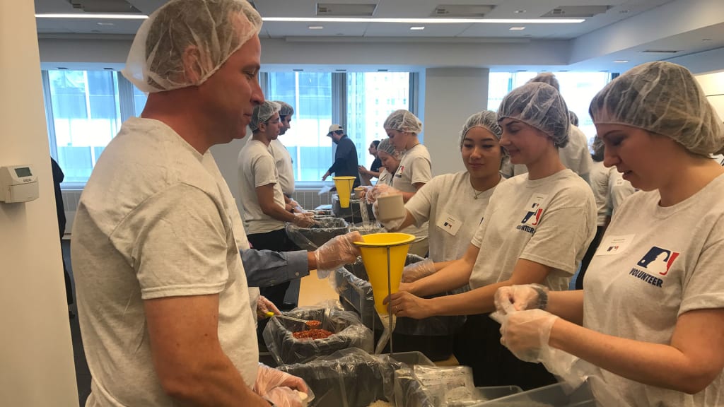 NEW YORK -- One thing we know: Major League Baseball cares about people around the world. On Wednesday afternoon, MLB and Rise Against Hunger hosted a food packaging event in the MLB offices on Park Avenue.