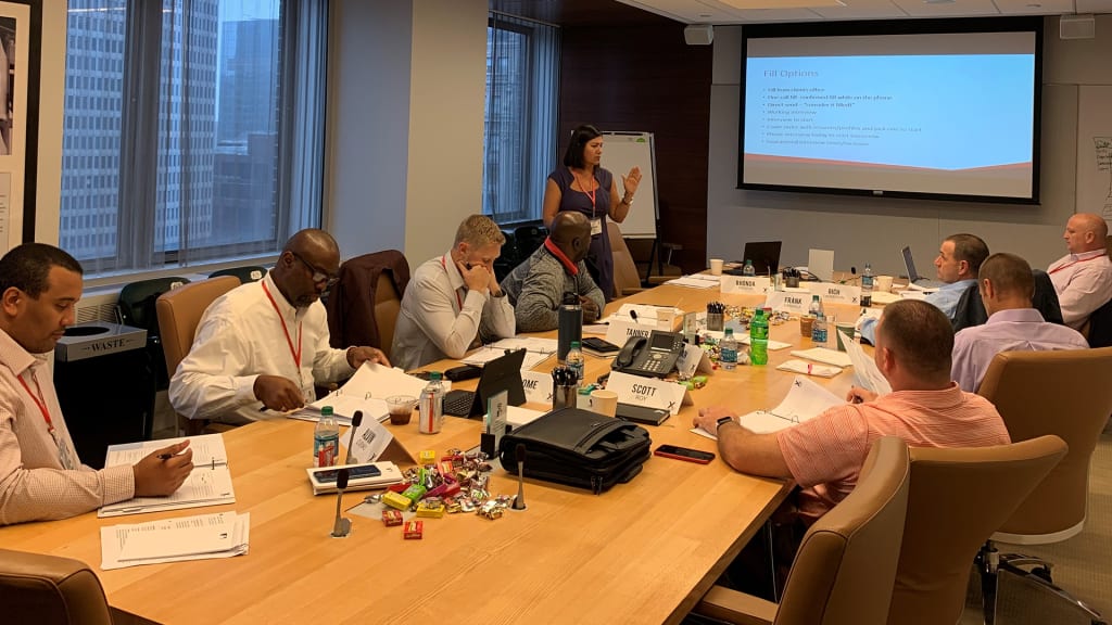 As Thompson explained after the session, the goal of the program was to teach the former ballplayers how to be competent, confident and conversational so that they could then be consultative with the customer base in the staffing industry. According to Scott Roy, one of the seven former Minor Leaguers, that’s what they took away from it.