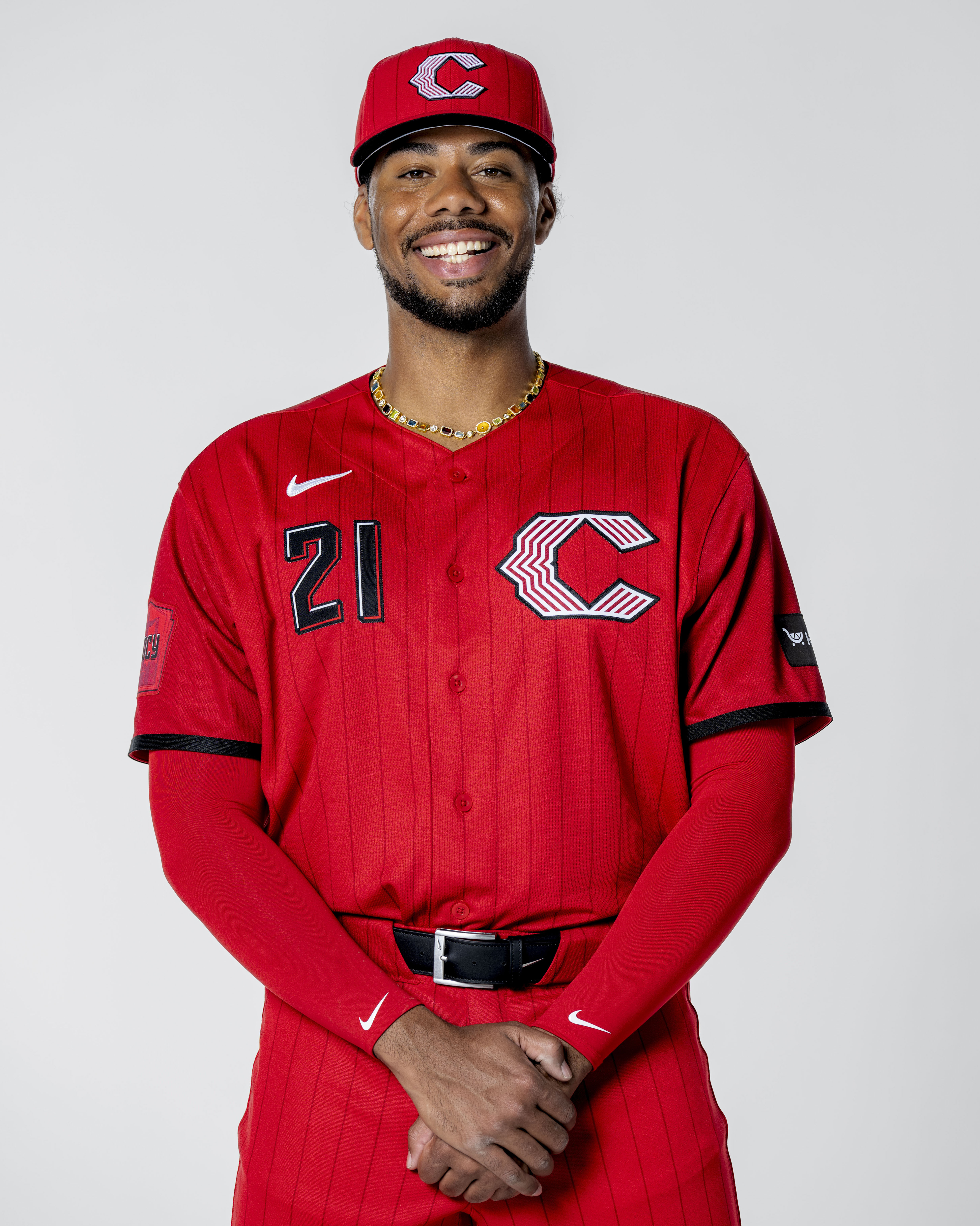 Cincinnati Reds: With a nod to the vest-style jersey the Reds last wore more than two decades ago, pinstripes return to the fore in a tone-on-tone style. A sleeve graphic features the Tyler Davidson Fountain, which begins flowing each year around Opening Day. More >