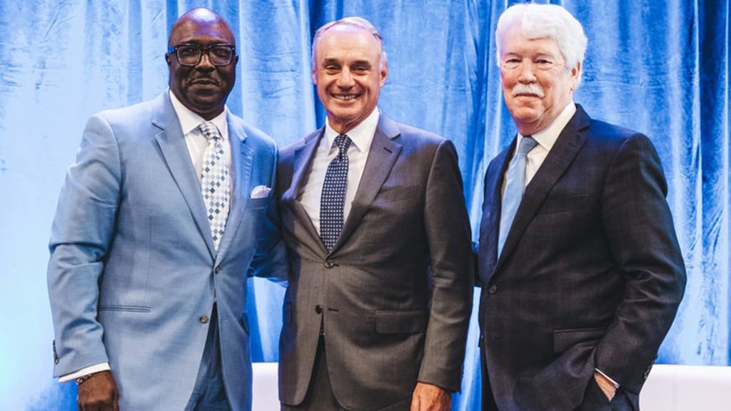 Manfred was in town for a visit with the Royals’ organization and ownership group and held a presentation alongside chairman and CEO John Sherman at the Kansas City Urban Youth Academy.