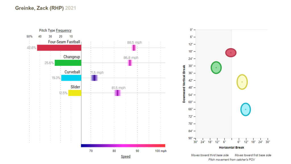 Breakdown: Greinke hasn't been missing many bats this season (16.0% whiff rate, 17.8 K%), but he's walked only one batter and has a 1.38 ERA through two starts against a pair of solid offenses in the A's and Angels. While Greinke's fastball is averaging only 88.5 mph these days, he still stifles hitters with his changeup -- which checks in just slightly slower at 86.8 mph. Opposing hitters are 12-for-84 (.143) with 34 strikeouts and just two home runs against Greinke's changeup since the start of last season.