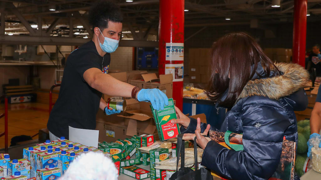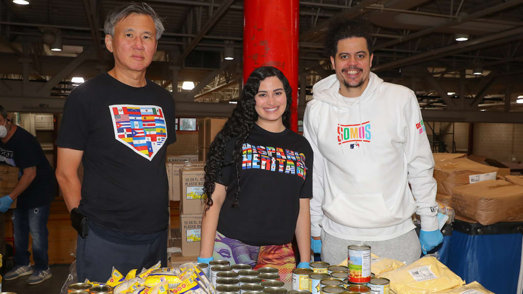 MLB’s SOMOS employee resource group (ERG), a group formed to enhance baseball’s efforts in the Hispanic, Latino and Latinx community, handed out a variety of canned foods, boxed items and turkeys to families in Corona, Queens.