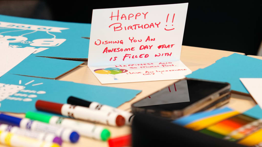 The MLB volunteers decorated all of the 100 boxes and wrote "Happy birthday" messages to include with each one, before filling them with birthday party supplies -- banners, balloons, streamers, candles -- plus packs of baseball cards and McDonald's gift cards.