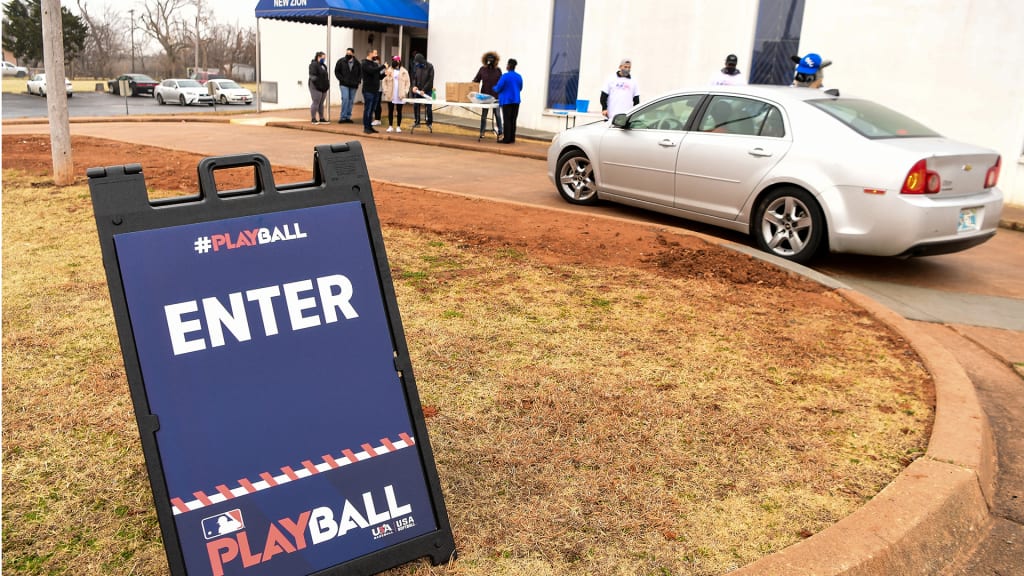 In Oklahoma City on Saturday, MLB in partnership with the New Zion Baptist Church went the distance -- and then some -- to hand out bats and balls to kids in advance of warmer weather and 2021 baseball and softball action.