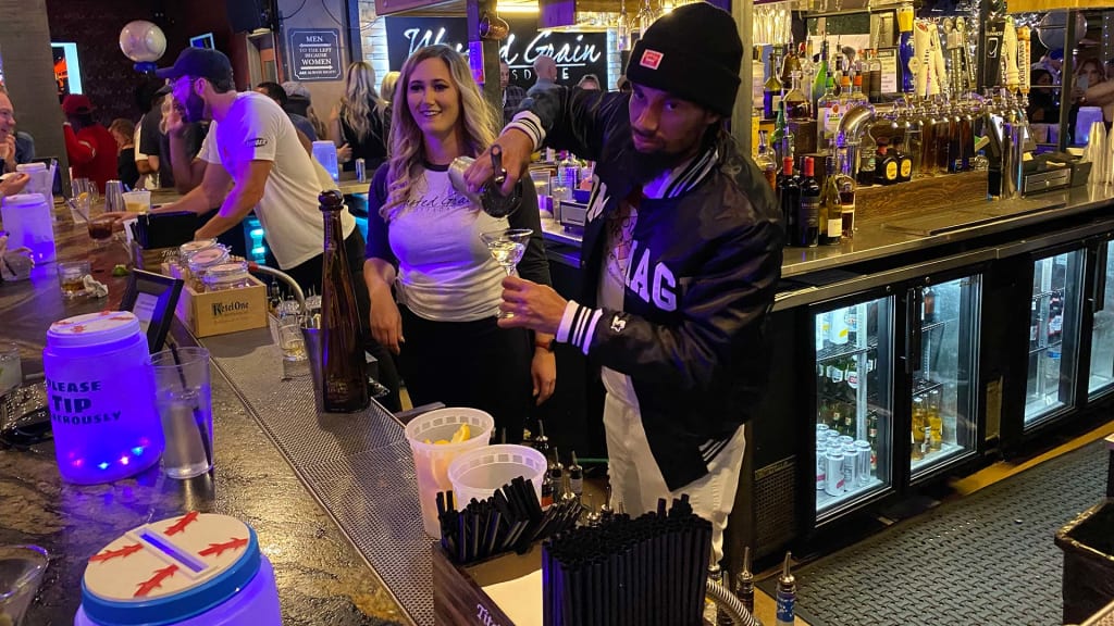 Celebrity Bartender Night wasn’t limited to the players who went behind the bar, either. Others showed up to support the cause, notably a group that included new Dodgers outfielder Mookie Betts.