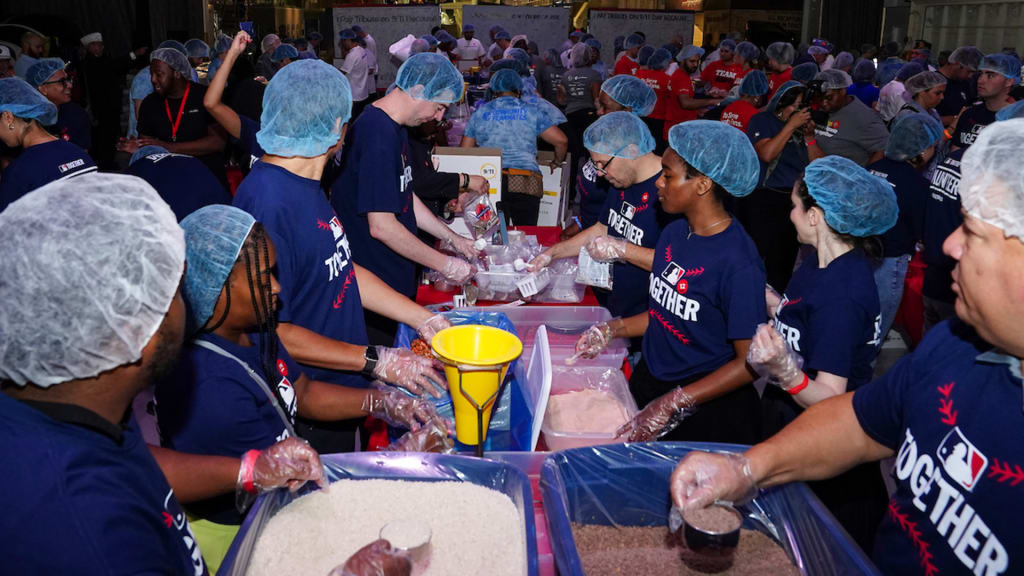 “We have the opportunity to roll up our sleeves and pack meals in remembrance of 9/11 and in honor of all of those first responders who gave their lives … and honor the memory and the legacy of 9/11,” said April Brown, MLB senior vice president of social responsibility.
