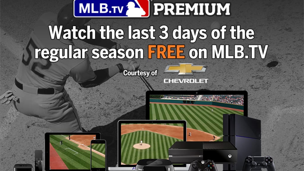 There are at least 45 games left on the Major League Baseball regular-season schedule, and Major League Baseball Advanced Media announced on Friday that all of those live, out-of-market MLB.TV Premium streams will be FREE to fans over more than 400 mobile or connected devices, courtesy of Chevrolet and the No. 1 sports technology.
