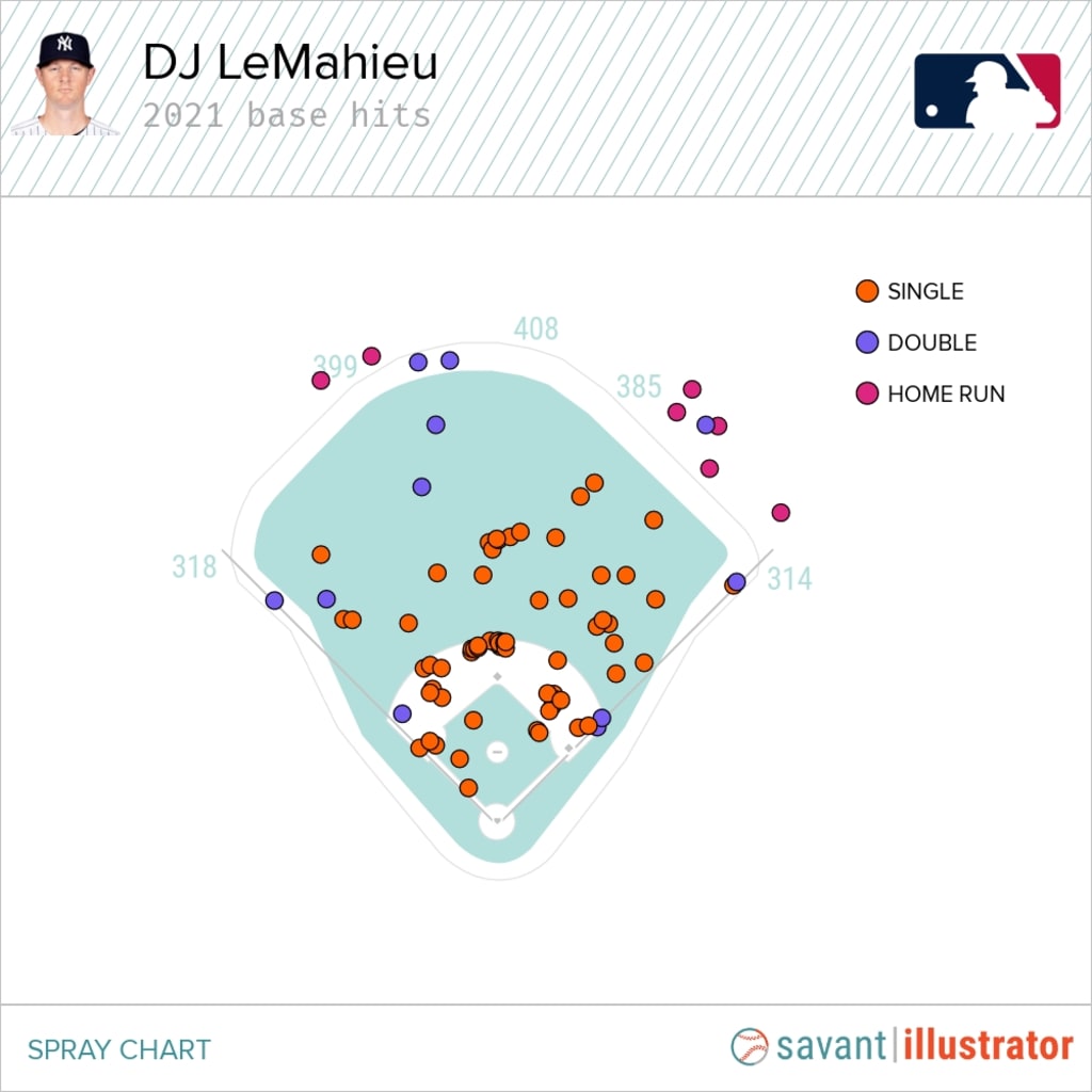 Here's DJ LeMahieu's base hit spray chart. He's third in the Majors with 33 opposite-field hits this season.