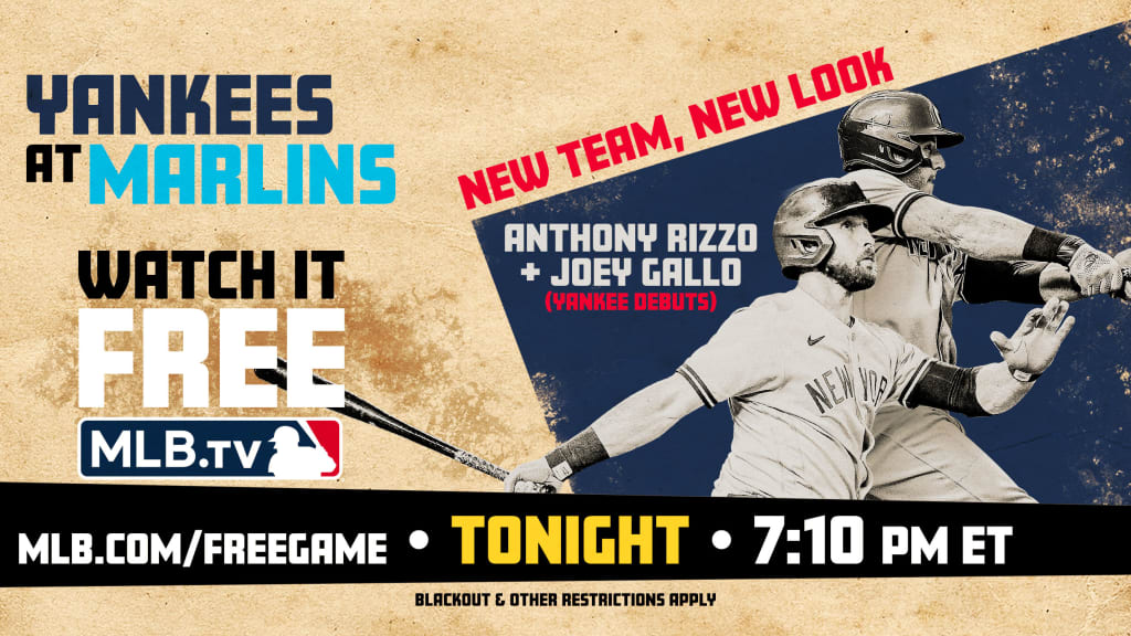 New York’s series opener against the Marlins in Miami is Friday’s MLB.TV Free Game of the Day (blackout restrictions apply, but live audio still will be available through MLB.TV in local markets). Gallo is batting second and starting in right field and Rizzo is hitting cleanup and manning first.