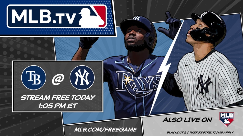 Aaron Judge and the Bronx Bombers host Randy Arozarena and the Rays at 1:05 p.m. ET at Yankee Stadium, and it's MLB.TV's Free Game of the Day.