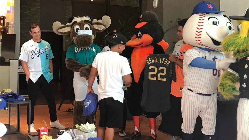 The players then took to the front of the room and handed out each child’s collection of memorabilia, including a bat, a ball, ASG-branded caps and shirts, and most popularly, a custom replica of their favorite hometown team’s 2022 All-Star uniform.