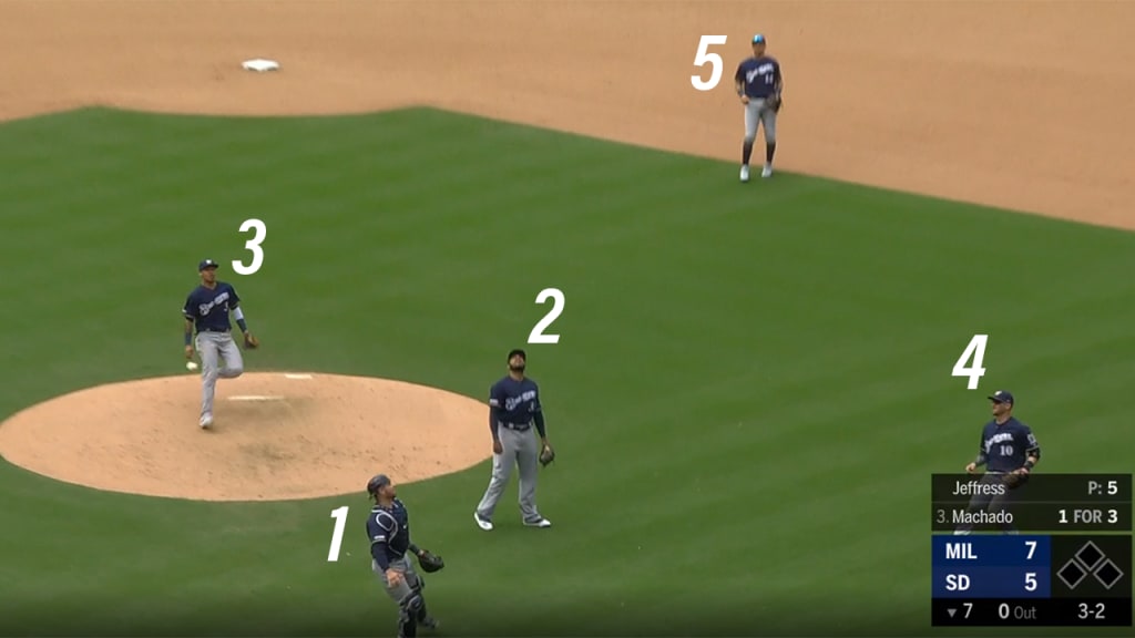 The visual part is because there were five different Brewers looking at this one with a chance to make the catch, and while this was obviously a case of simple miscommunication, that's still more than half the defense, and this one had a direct impact on the game.