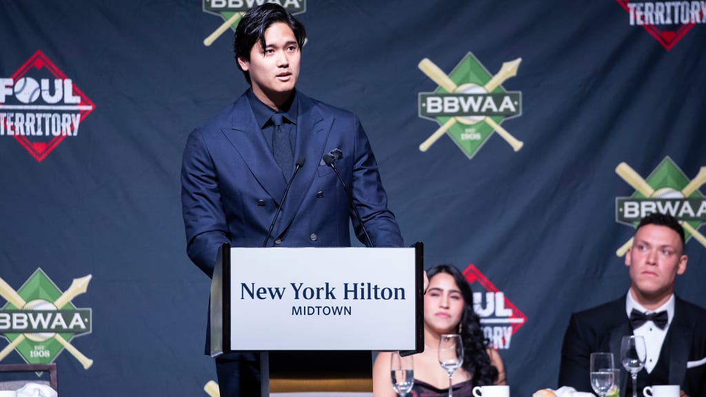 There were many other awards presented by the New York BBWAA chapter, including the Joe DiMaggio “Toast of the Town” Award (Pete Alonso), the Sid Mercer/Dick Young New York Player of the Year Award (Judge), the Joan Payson/Shannon Forde Community Service Award (Carlos and Ashley Rodón) and the Babe Ruth Postseason MVP Award (Yoshinobu Yamamoto).