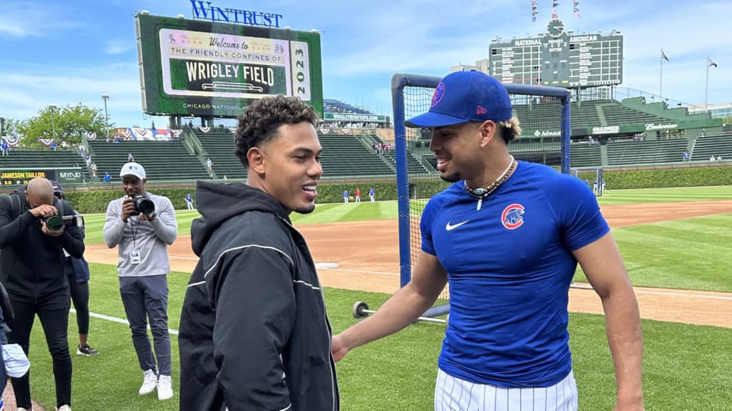 Myke Towers is here at Wrigley tonight to throw out the first pitch. Christopher Morel was among the Cubs who met him before the game. pic.twitter.com/12saX6myn5