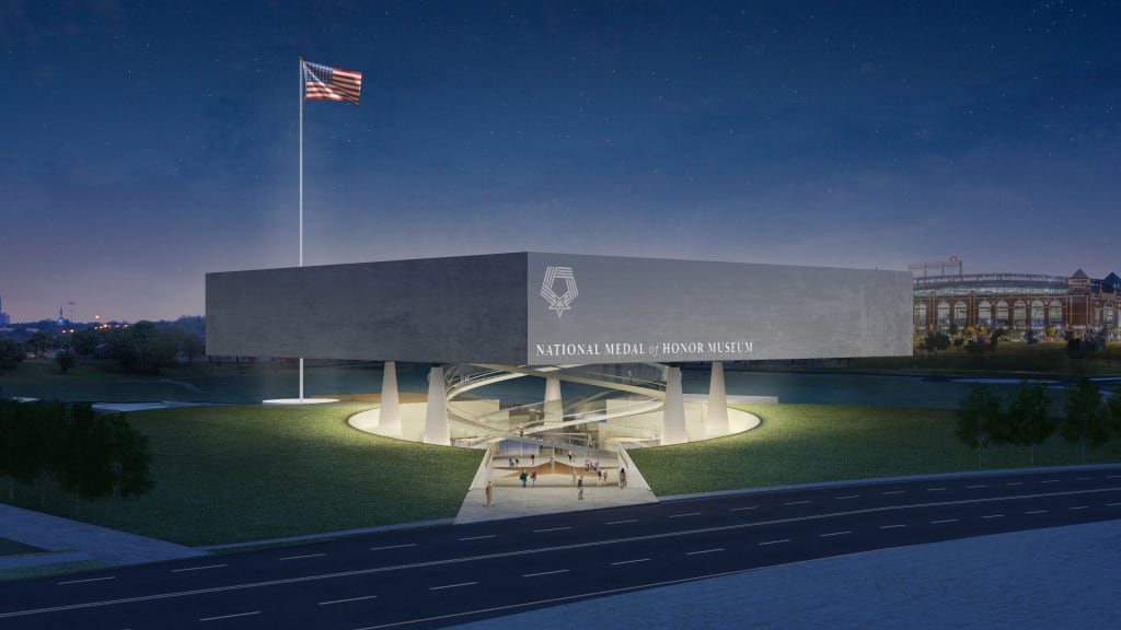 Major League Baseball has shown public support for the project, including the installation of cutouts of Medal of Honor recipients in the community section at American League Championship Series games in San Diego. The Rangers have lent support and expertise in a variety of areas, including the building’s design and location, north of the team’s former home, Globe Life Park, and adjacent to Esports Stadium Arlington. Leibman said his long-term vision for the Arlington Entertainment District involves spectators visiting the Medal of Honor Museum for education and reflection before or after they attend sporting events.