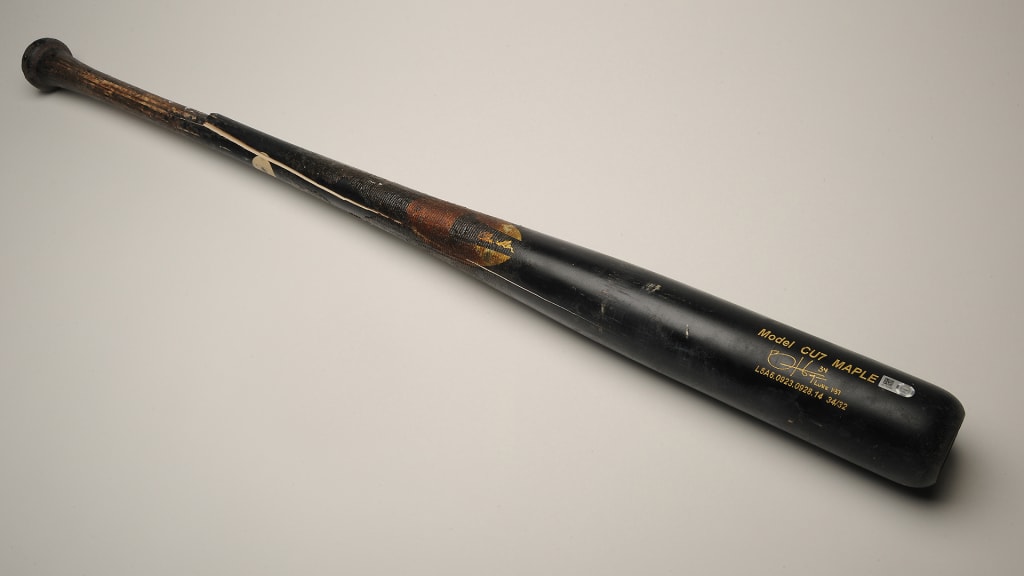 Fun facts: Wielding this bat, Nationals outfielder Bryce Harper hit three home runs to lead the Nationals to a 7-5 victory over the visiting Marlins on May 6, 2015. At the age of 22, Harper became the youngest player to hit three homers in a game since Joe Lahoud of the Red Sox in 1969.