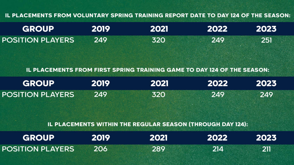 As far as the IL is concerned, the data tells us that position players are getting hurt at basically the same rate they did last year and in the last pre-pandemic season of 2019.