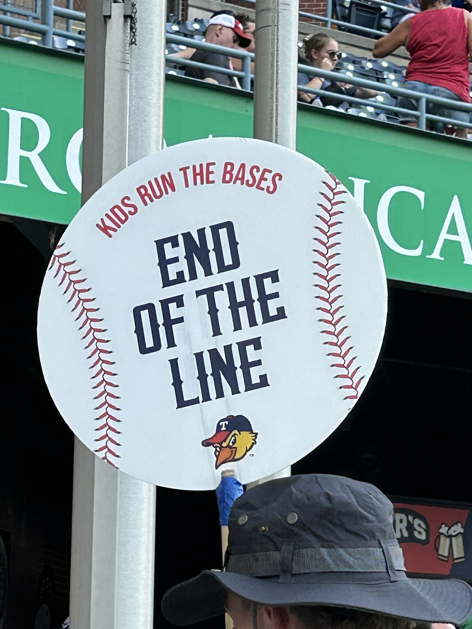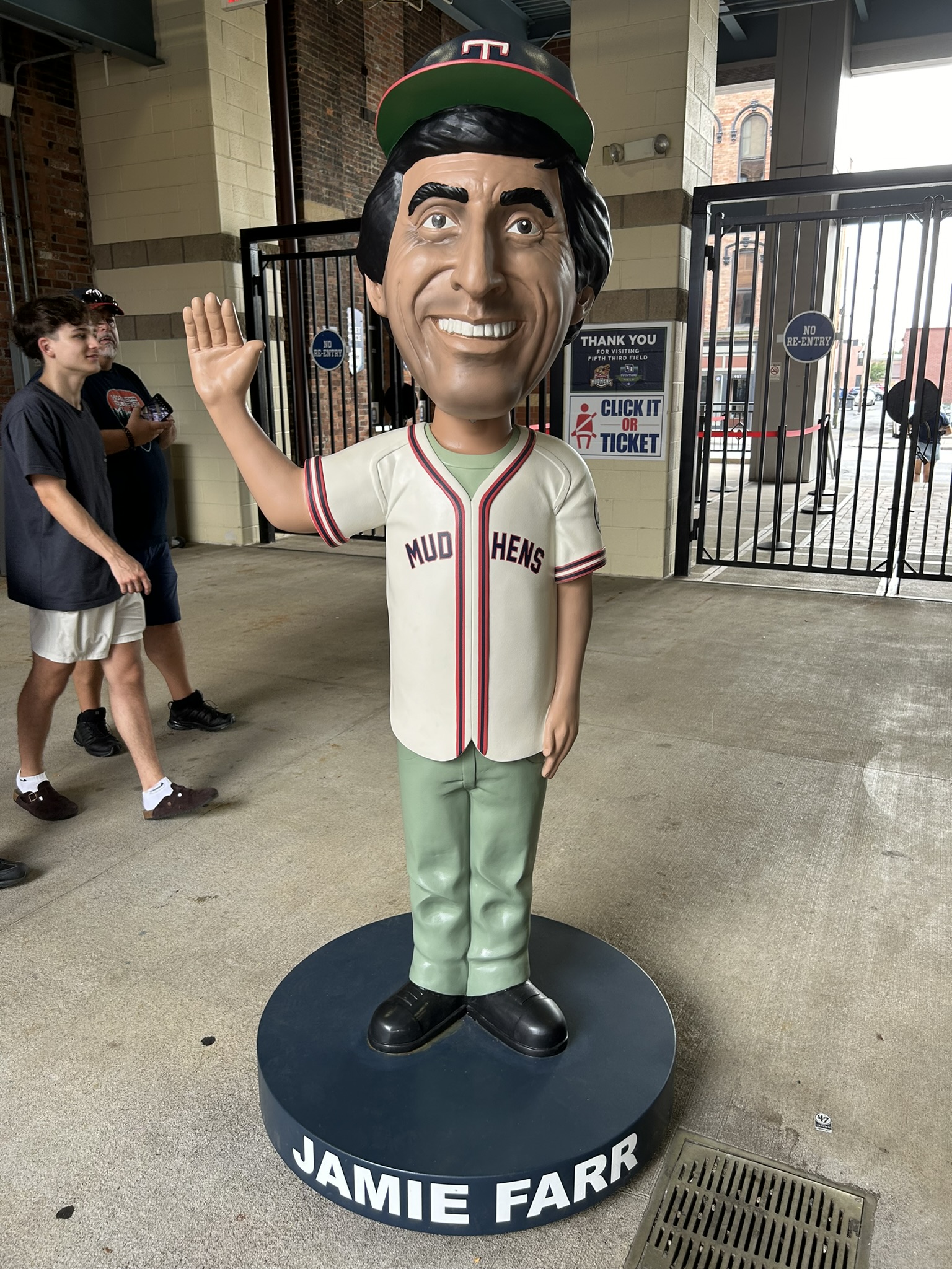 I promise you that there was a game going on during all this. I also promise you that Fifth Third Field is a phenomenal place to see a game. Great energy and interesting architecture, with all sorts of creative tributes to Mud Hens legends and Toledo icons. Truly, you don’t have to look Farr.