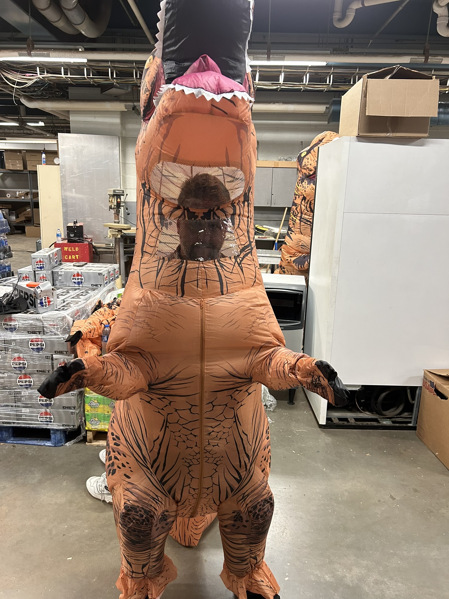 I then became a dino myself, suiting up as a velociraptor inside a storage area near the groundskeeper’s office. Initially I was going to race against a bunch of frogs (Toledo, remember, is Frogtown), but costuming issues (specifically, a broken zipper) kept that from happening.