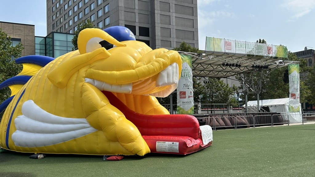 Or divert your attention toward whatever’s going on across the street at Hensville Park. On this late Sunday morning, inflatables were being inflated.