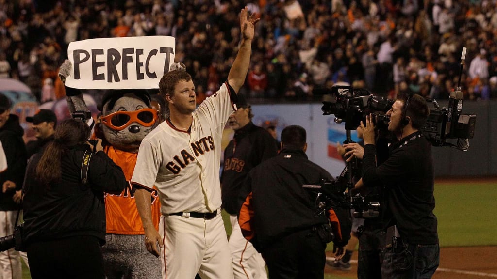 Cain occupies a singular place in Giants history, as he’s the only pitcher in the franchise’s 138-year history to throw a perfect game. He struck out 14 and threw 125 pitches while retiring all 27 Astros he faced on that magical night in San Francisco. Cain received an assist from right fielder Gregor Blanco, who made a spectacular diving catch on a drive by Jordan Schafer to keep the perfect game intact in the seventh inning.
