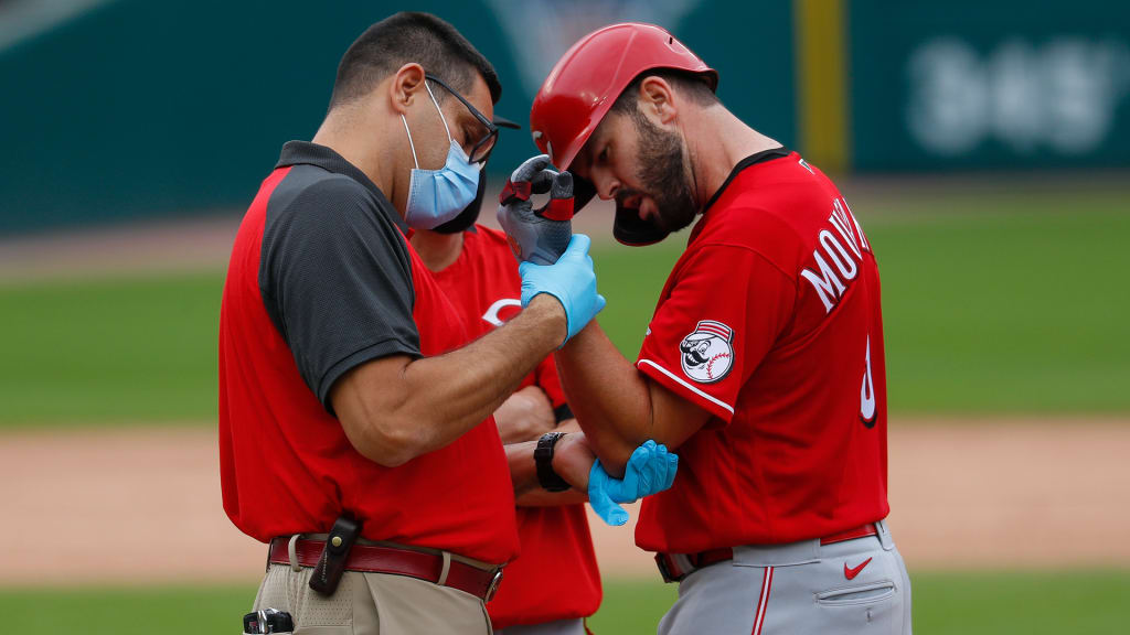 CINCINNATI -- Reds second baseman Mike Moustakas would have loved a chance to face the former club he’s most associated with -- the Royals -- this week in a two-game series. But that will have to wait, as Moustakas continues to heal from a right quadriceps bruise and strain that have him on the 10-day injured list.