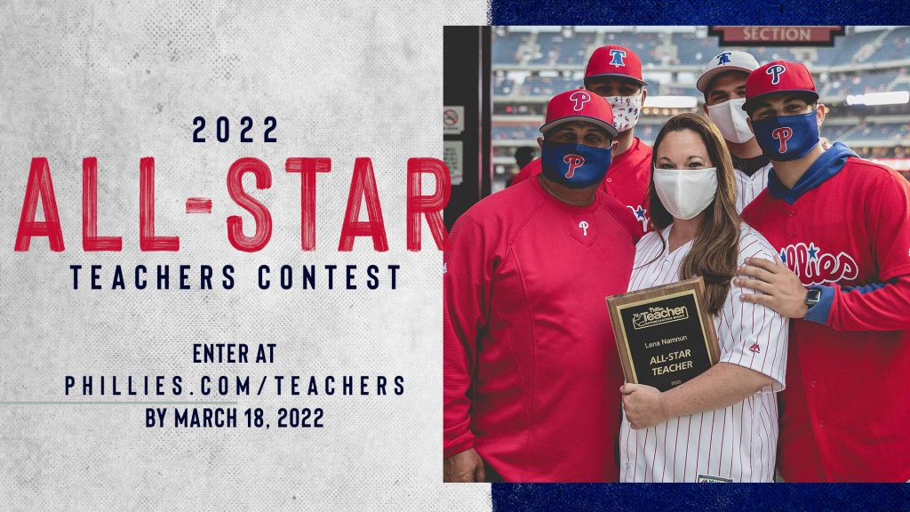 To nominate a past or present teacher for this honor, fans are required to submit a brief essay of no more than 500 words telling the Phillies about their favorite All-Star Teacher and why he/she should be selected for this opportunity. All essays must be submitted by 4:59 p.m. on Friday, March 18, at Phillies.com/community.For questions, please email community@phillies.com.