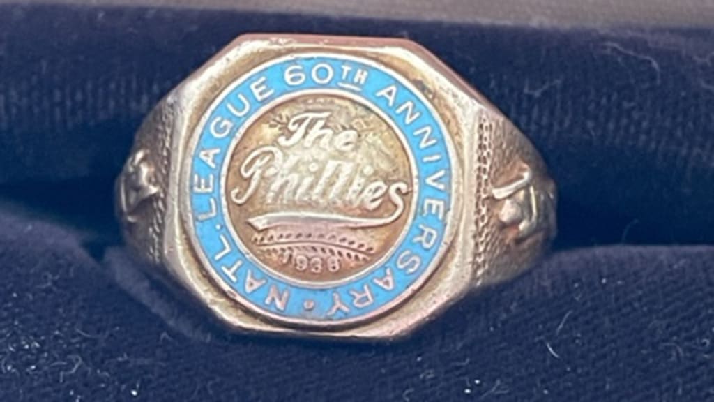 Although my research is incomplete, I believe this was the first time the Phillies distributed rings to players to commemorate a special occasion. In 1915, when the team won the NL pennant, players received pocket watches. In 1925, when the 50th anniversary of the NL’s founding was observed, players received watch fobs. If future research compels me to change this view, I’ll let you know.