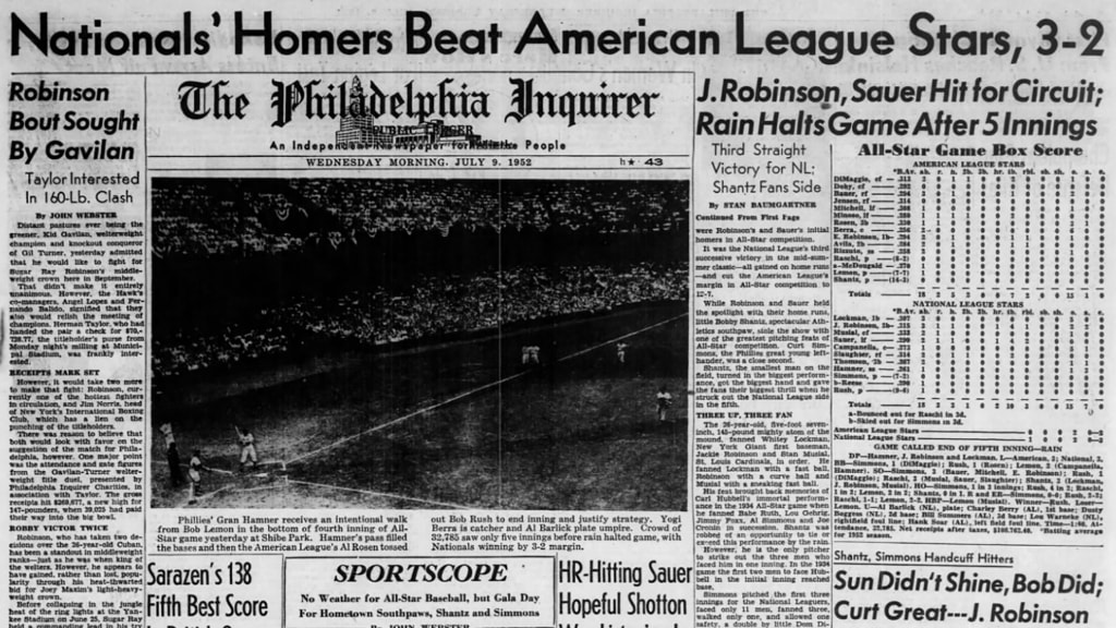 Philadelphia’s second All-Star Game -- 1952 at Shibe Park -- also became a historic one. The first in 1943 was the first night game.