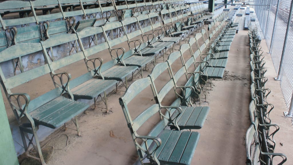 The original 1909 seats are separated by fencing along the concourse and are in pristine shape. The faded green and splintered, fold-down chairs feature an ornate butterfly design between its legs and should be given proper respect when sitting in them. The number of Hall of Famers, World Series games, and future stars in the Minor Leagues have all been viewed from these historic chairs. Whoever thought of moving these seats elsewhere must have been a saint.