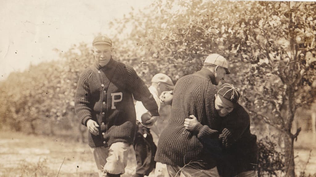 Note the players are wearing wool sweaters to stay warm. Field jackets were not introduced until the mid-1920s.