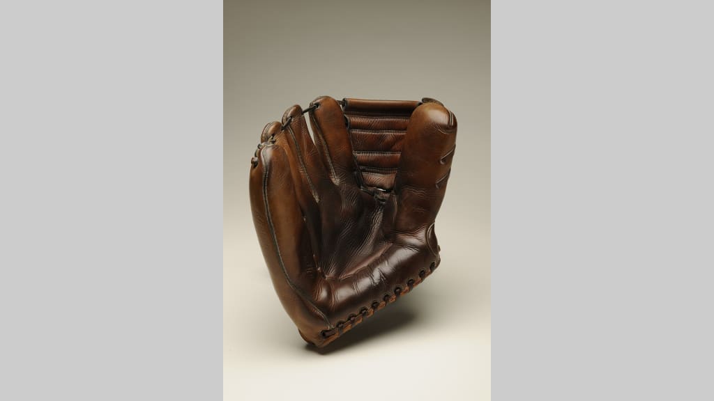 Fun facts: Left-hander Harvey Haddix maintained a perfect game through 12 innings but ultimately lost to the Milwaukee Braves, 1-0, in the 13th. This is the glove that he wore during his unforgettable performance.