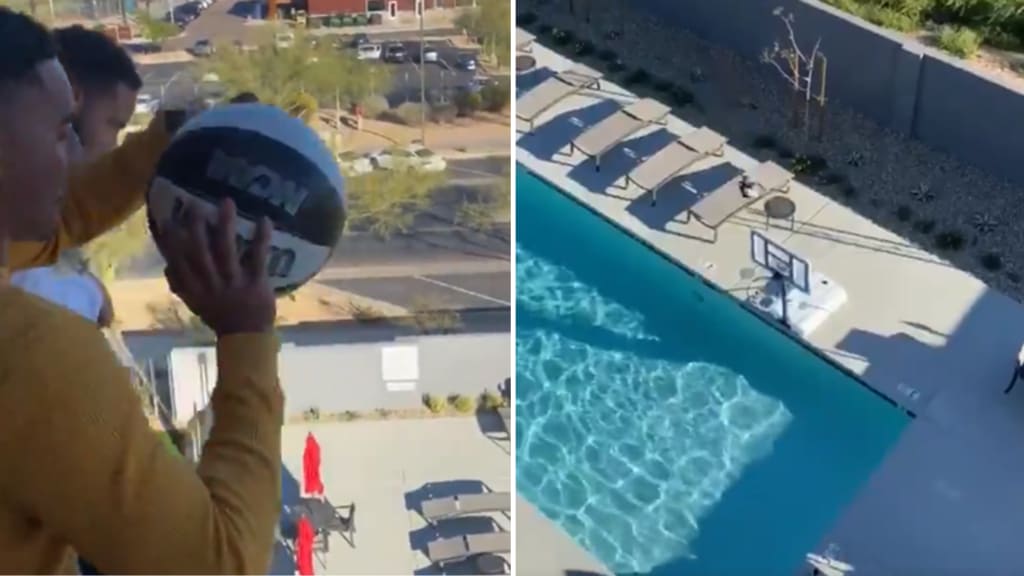 It's Spring Training, one of the best times of the year. Baseball is back, and so is ... shooting trick shots at the local swimming pool?
