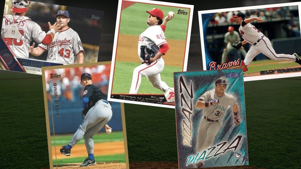 Nomo took the baseball world by storm when he came over from Japan and made his MLB debut with the Dodgers in 1995. He would go on to have his best years with Los Angeles before being traded to New York in '98. Things didn't go as well there, but at least we have this card of him in that much-debated black Mets jersey. More >