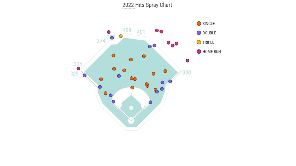 Even with those career-high hitting rates, he’s still found a way to use the whole field to his advantage. Seriously, look at this spray chart: