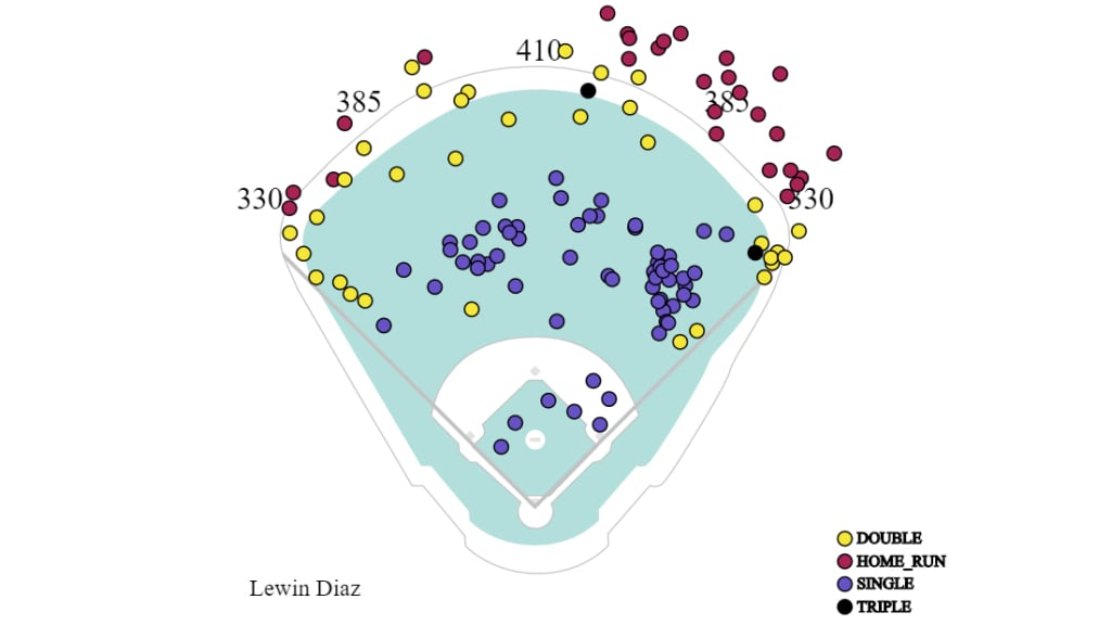 Lewin Diaz, 1B (Marlins No. 12): Diaz quickly put his rocky 2018 Florida State League campaign (.224/.255/.344, 6 HR) behind him last season in his return to the level and had already advanced to Double-A when the Marlins acquired him from Minnesota in the July 13 Sergio Romo trade. He ultimately batted .270/.321/.530 across the two levels, hitting 27 homers and 33 doubles in 121 games. The 23-year-old’s ability to hit the ball in the air was the difference, as his 40.9 percent fly-ball rate on BIP was nearly a nine percent improvement over his 2018 mark. Diaz also recorded a ridiculous .553 isolated power on FB+LD contact after posting a .274 ISO the previous year.