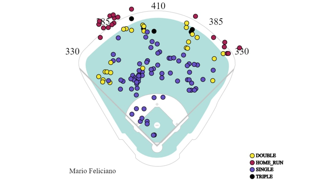 Mario Feliciano, C (Brewers No. 8): Yet another player who struggled to produce while battling injuries early in his career, Feliciano, whom Milwaukee selected with the No. 75 overall pick in the 2016 Draft, hit for both average and power in 2019, slashing .273/.324/.477 with a Carolina League-best 19 home runs and the circuit’s second-most RBIs (81). The 21-year-old catcher’s 56.2 percent FB+LD rate on BIP was a huge improvement over his 45 percent average from 2016-18, and he also made considerable gains against right-handed pitching, generating FB+LD contact 35.9 percent of the time after averaging 30 percent during his first three seasons.