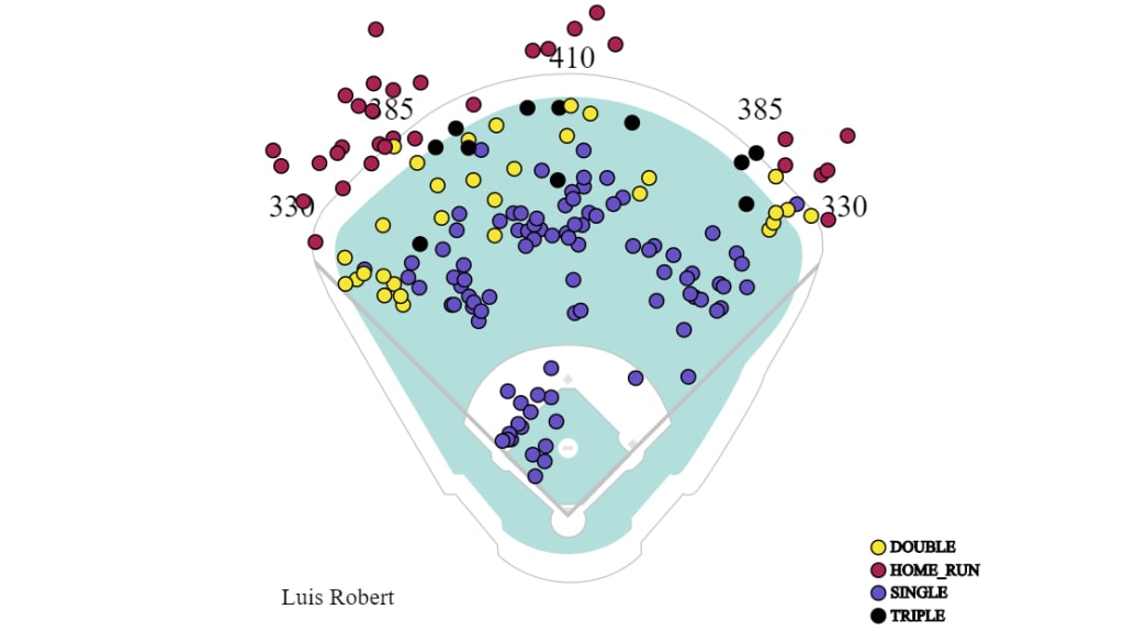 The difference in Robert’s batted-ball data from 2018 to '19 when behind in the count is staggering: after generating a FB+LD on 10.9 percent of BIP in ’18, Robert did so at a 20.5 percent clip last season. He also recorded a 19.7 percent FB+LD rate in two-strike counts, up from 11.7 percent in ’18.